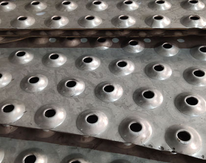 魚眼沖孔網的特殊表面是由較大的凹陷的孔和凸起的沖孔組成的,凸起的沖孔能提供較好的防滑保護和防滑性能。較大的凹陷的孔能滲漏液體,泥,碎石和其他碎片。魚眼防滑板的金屬板面提供的支撐略低于普通防滑板,重量較普通防滑板輕,易于安裝。